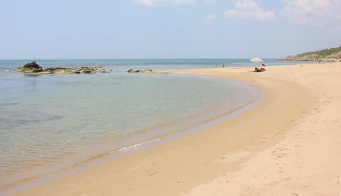 che confina con il Mar Mediterraneo si estende per circa 10 Km ed è caratterizzata da una spiaggia sabbiosa con la presenza del fenomeno naturale delle “Dune”.
